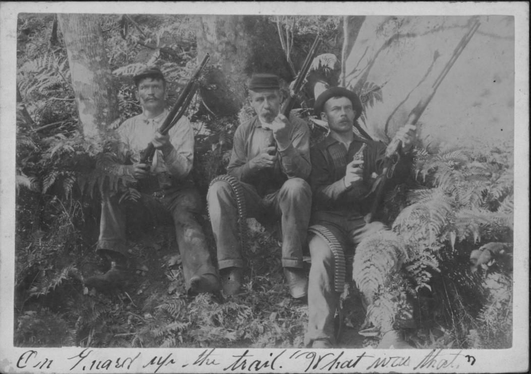 National guardsmen in hunt for "lepers," Kalalau Valley, Kauai. |