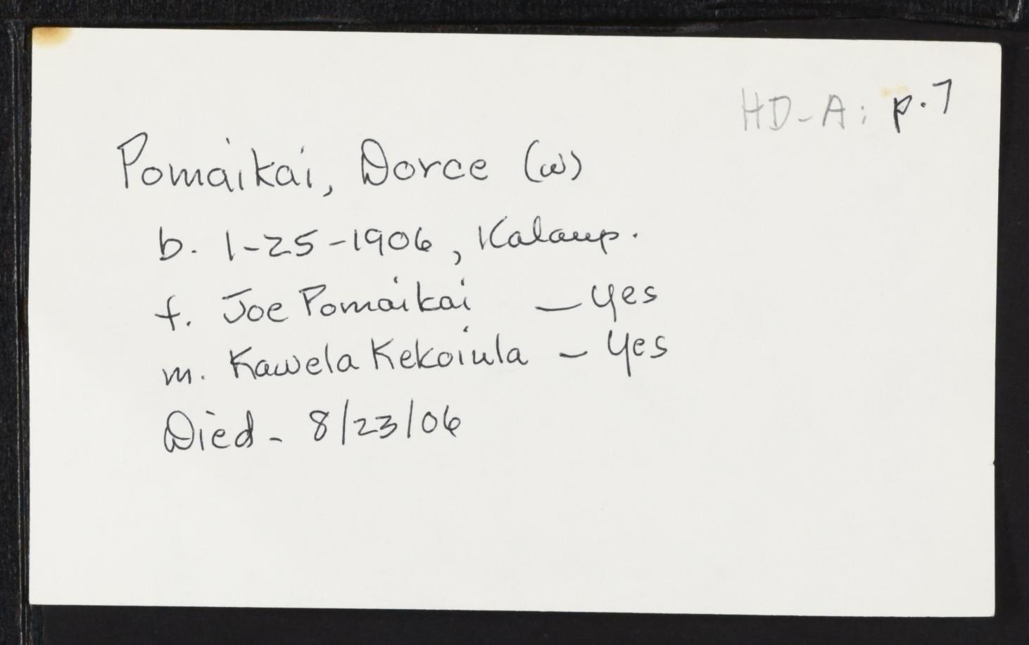 Kalaupapa Birth Record "Dorce Pomaikai" |