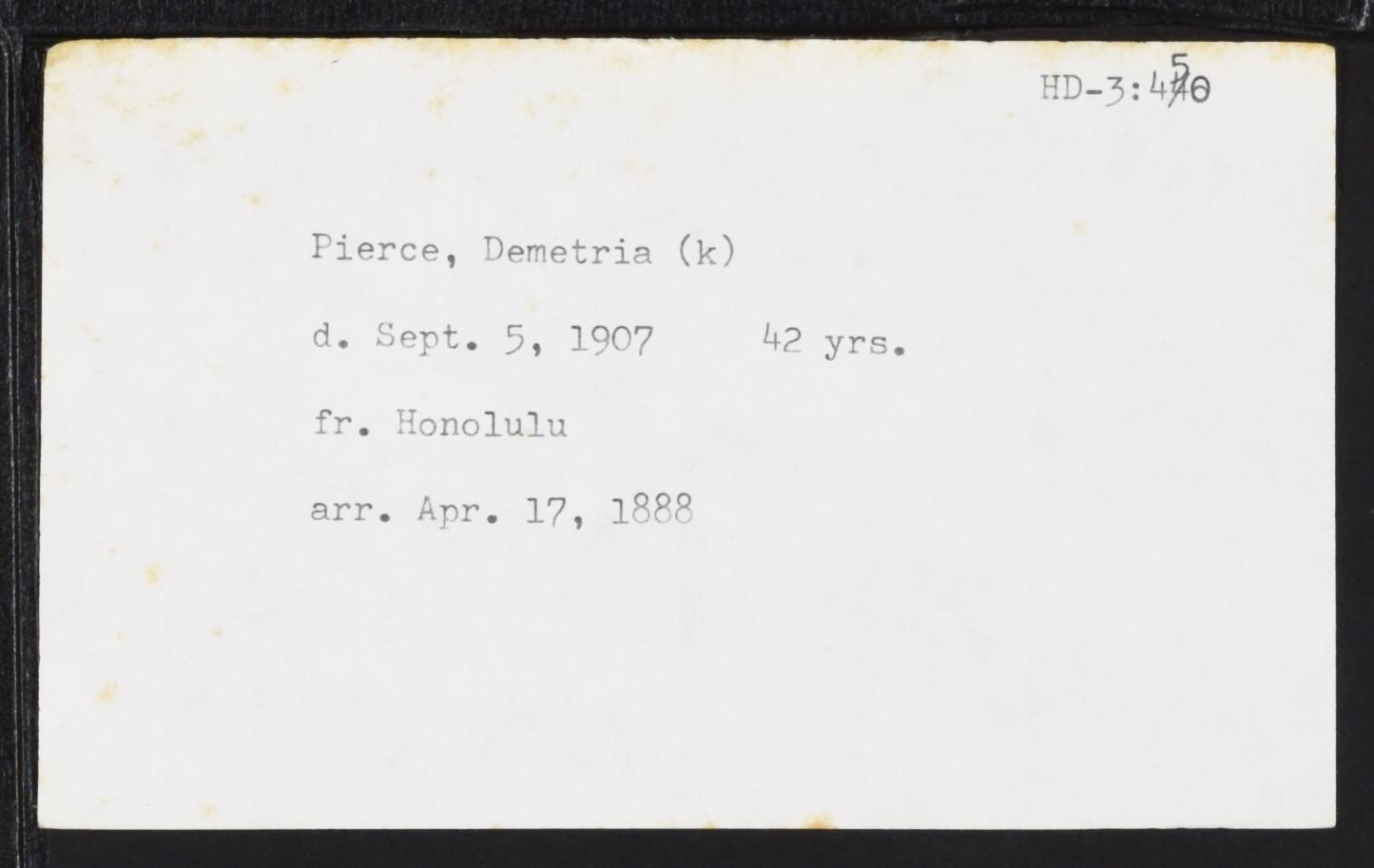 Kalaupapa Death Record "Demetria Pierce" |