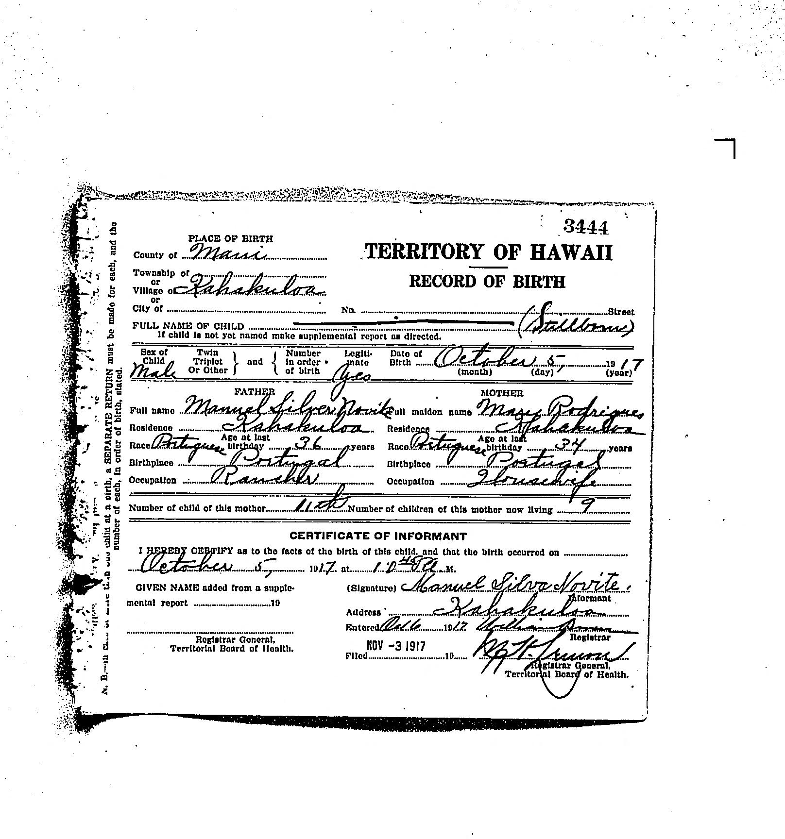 Novike - Birth Record - 1917 Oct 5 |