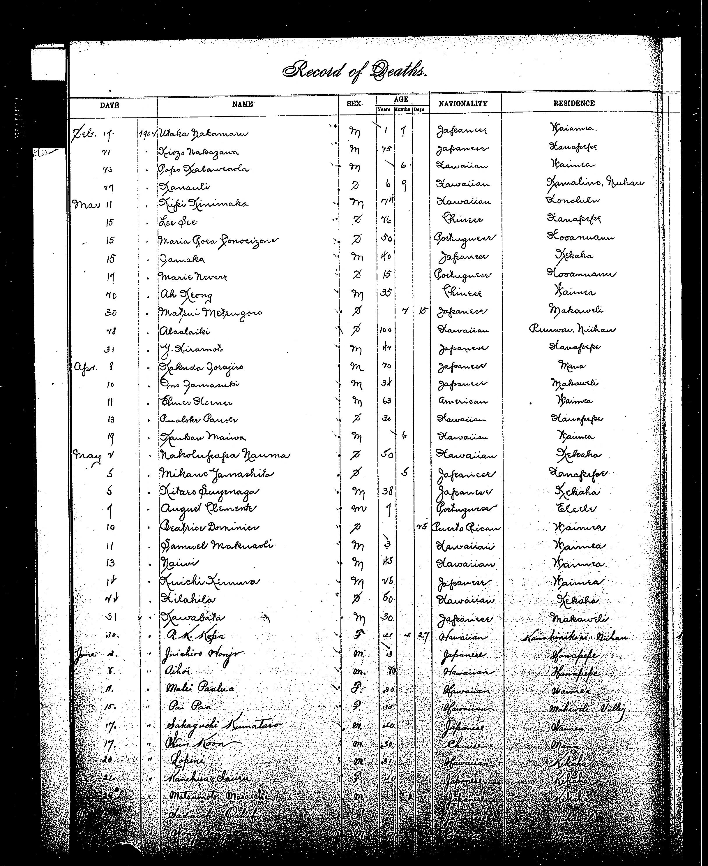 Beatrice Dominice - Death Record - 1902 May 10 |