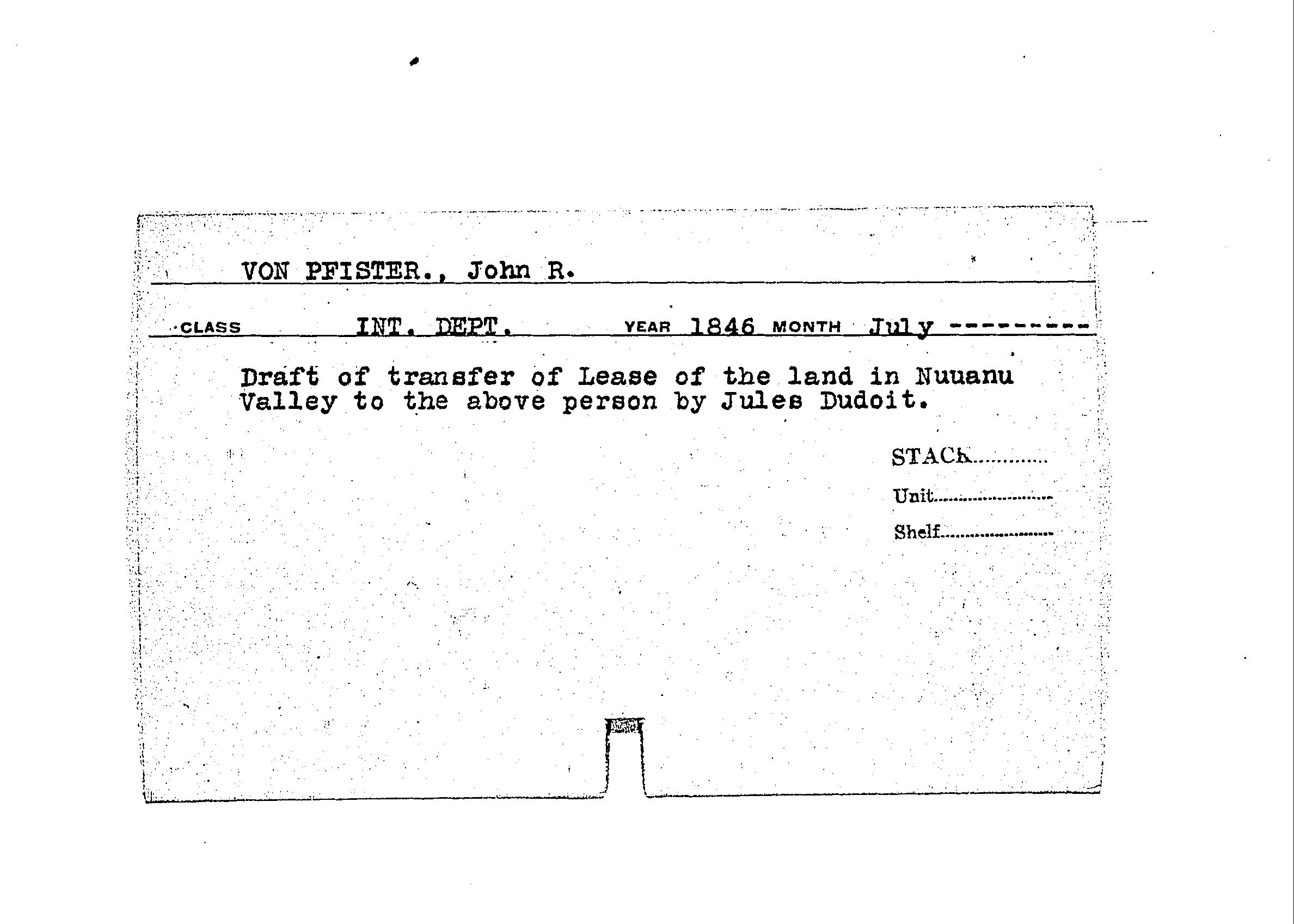 Land by Entity Index Card "VON PFISTER, JOHN R"