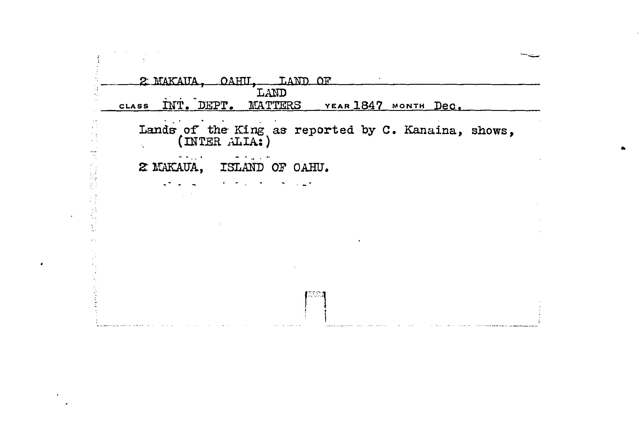 Land by Place Name Index Card "2 MAKAUA, LAND OF"